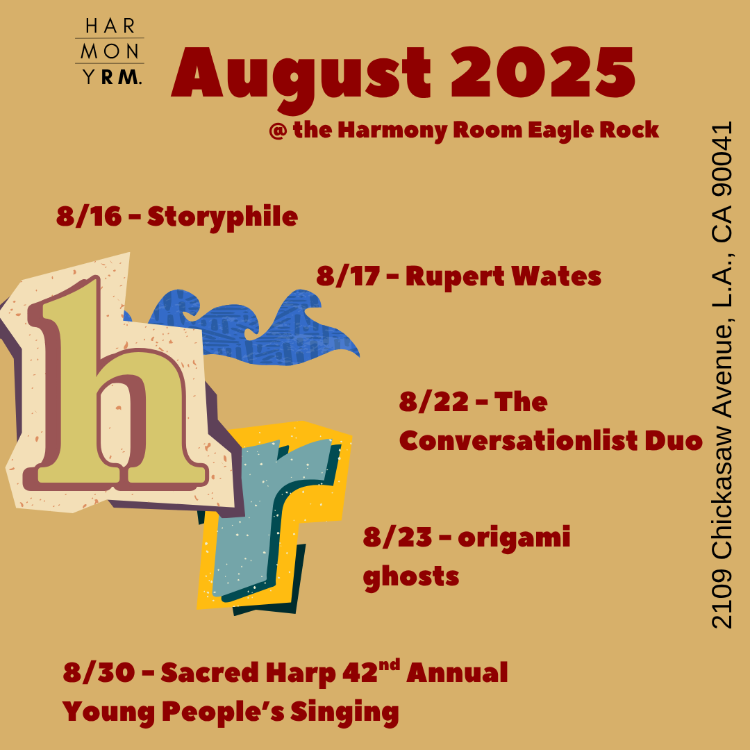 Harmony Room EAGLE ROCK 2109 Chickasaw Avenue, Los Angeles, CA 90041Harmony Room @ St. Barnabas Episcopal Church, Eagle Rock CONCERT TICKETS HERE Interested in performing? Contact us here.Looking to attend? Check our calendar, and get all of the latest updates here on our Facebook page.Interested in volunteering at The Harmony Room? Click here.For Harmony Room Frequently Asked Questions (FAQ), click here. Previous Concerts